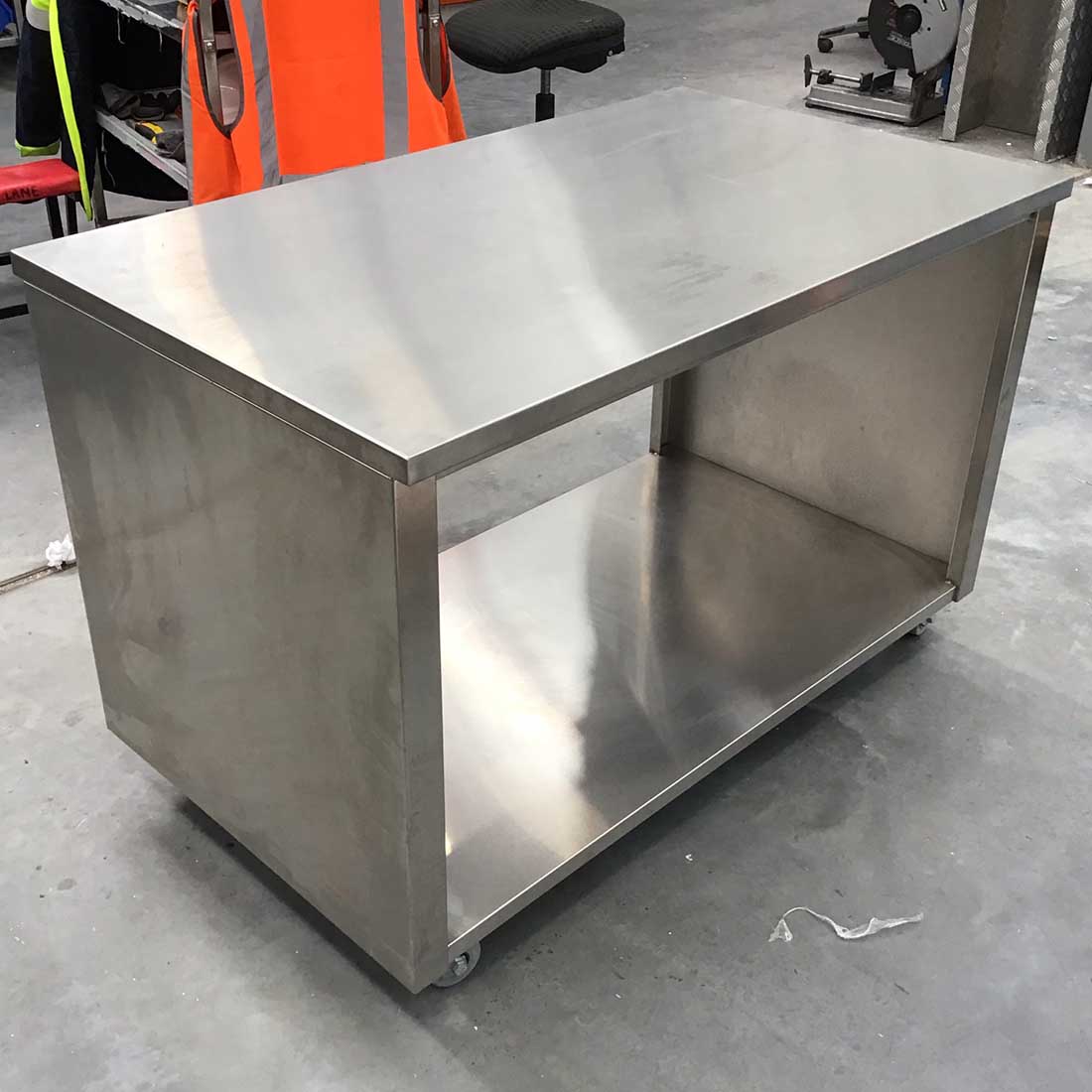 All Stainless Steel Pass-Through Cabinet On Castors to Keep Kitchens Tidy and Hide Clutter Great for Open Kitchens