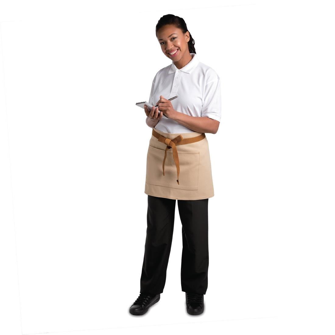 This modern bistro apron from renowned brand Southside is perfect for bar or waiting staff. The apron's warm khaki look will scream quality to your customers and is sure to make a great first impression. It features a large front pocket for everyday convenience. This apron provides comfort to staff working busy shifts and is designed to stand up to the rigours of a fast-paced working environment. Made from 100% cotton.