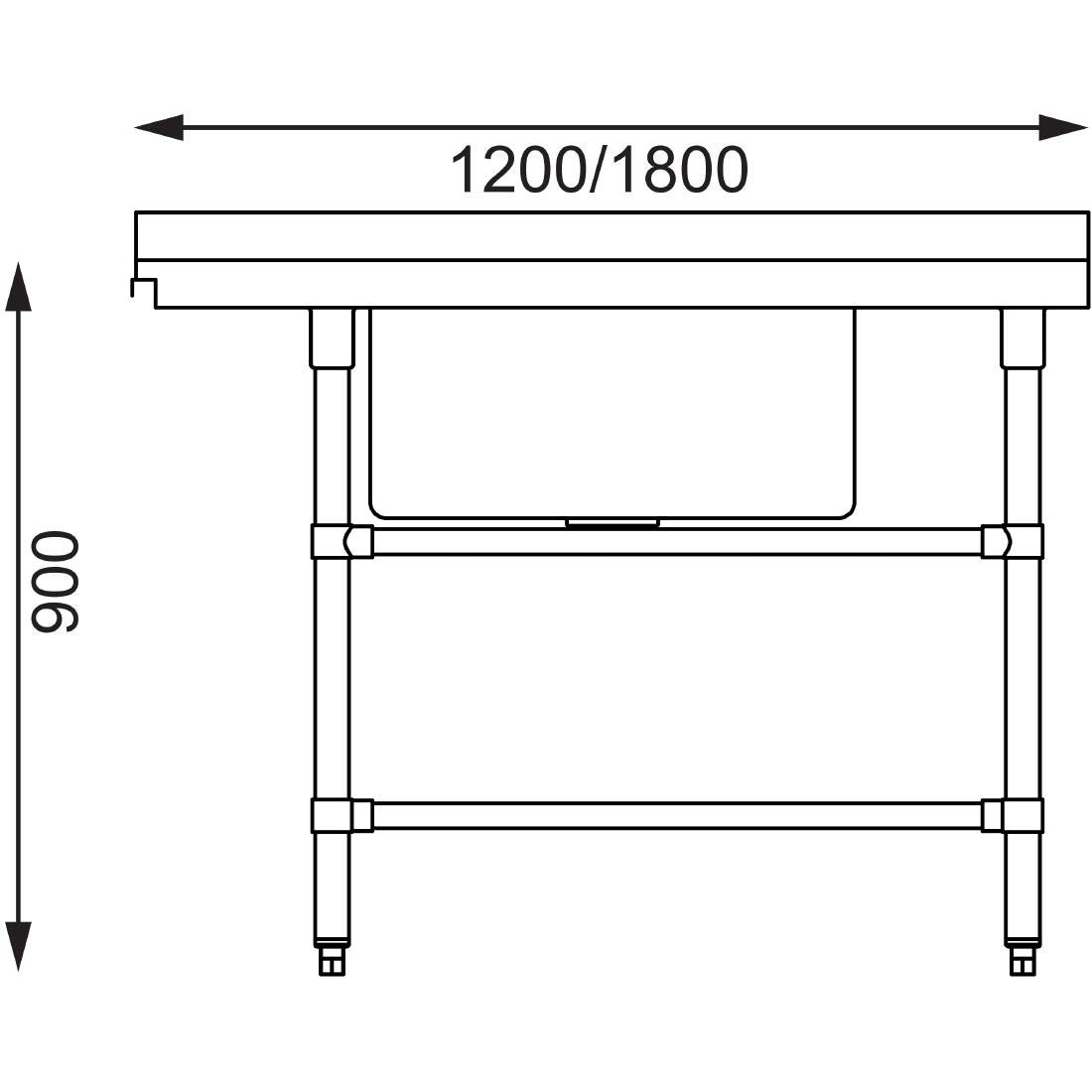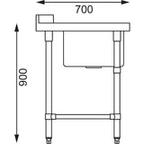 Vogue Dishwasher Inlet Table with Sink (90mm outlet) - 1800x700x960mm R/H